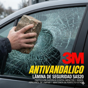La lámina de seguridad 3M SAS20 no solo le da a tu vehículo un aspecto elegante y oscuro, sino que transforma tus cristales en un escudo resistente. Diseñada para mantener los fragmentos de vidrio unidos ante impactos o intentos de robo (smash-and-grab), protege a los ocupantes de astillas voladoras y retrasa el ingreso de intrusos. Además, bloquea el 99% de los rayos UV, cuidando el interior de tu vehículo.